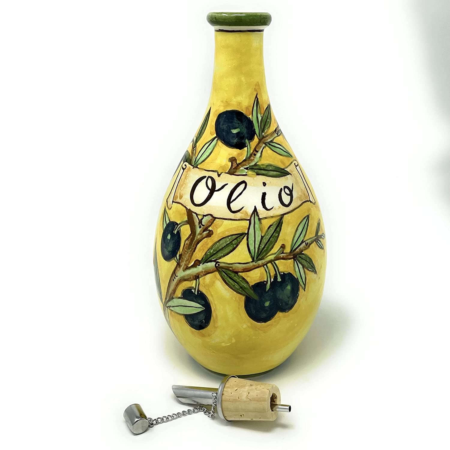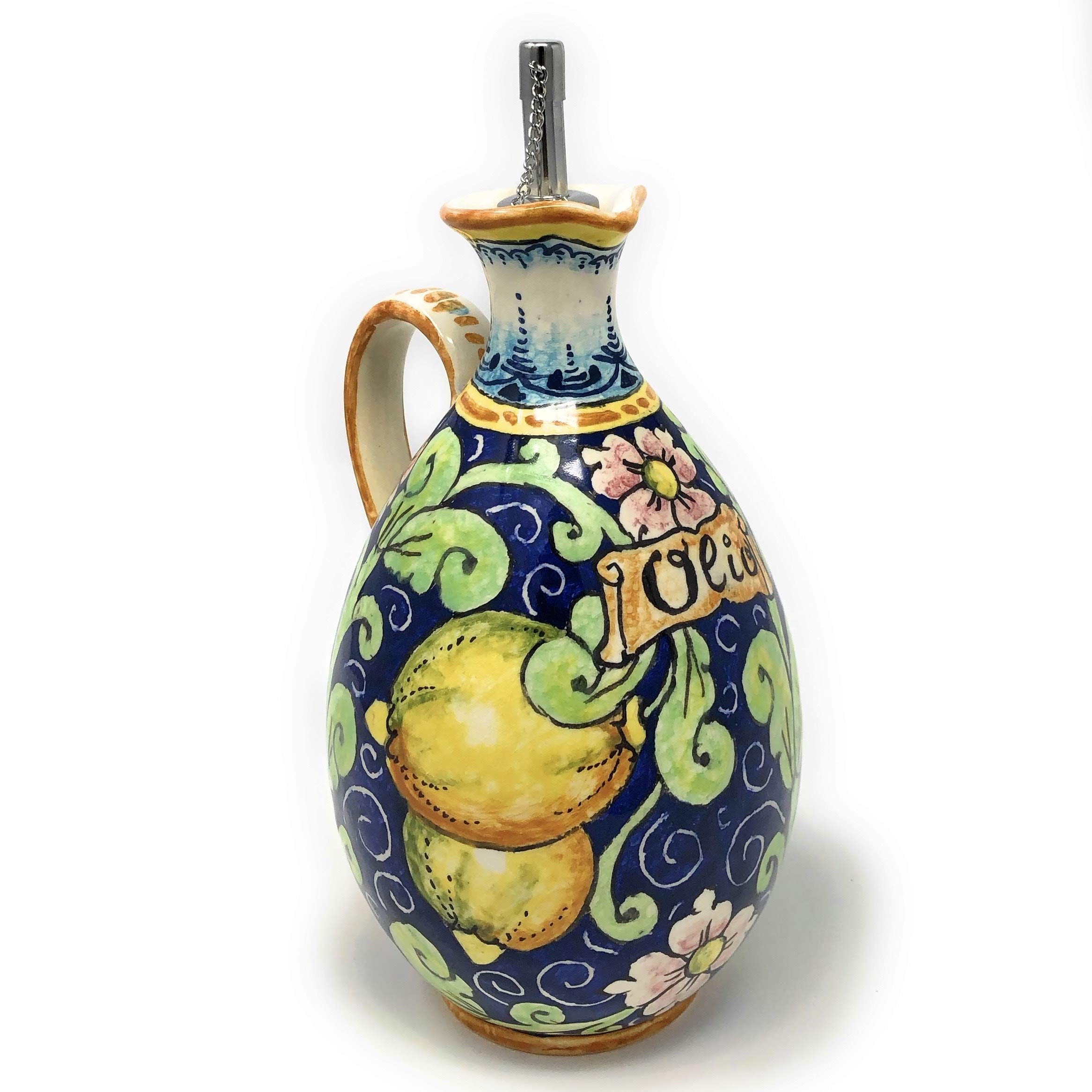 CERAMICHE D'ARTE PARRINI - Italian Ceramic Art Pottery Oil Dispenser Cruet Pattern Landscaper Poppies Tuscan Hand Painted Made in ITALY