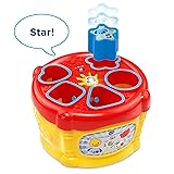 Sort the shape blocks and drop them into the drum learning toy to build motor skills; open the top of the drum to dump the blocks out and start again Magic shape sorter recognizes each block and introduces animals, shapes and numbers Flashing light on top of the drum attracts your baby’s attention as if flashes along with the sounds Tapping on the drum plays a variety of drum sounds and tunes to encourages imaginative play Intended for ages 6-36 months; requires 2 AAA batteries; batteries included for demo purposes only; new batteries recommended for regular use
