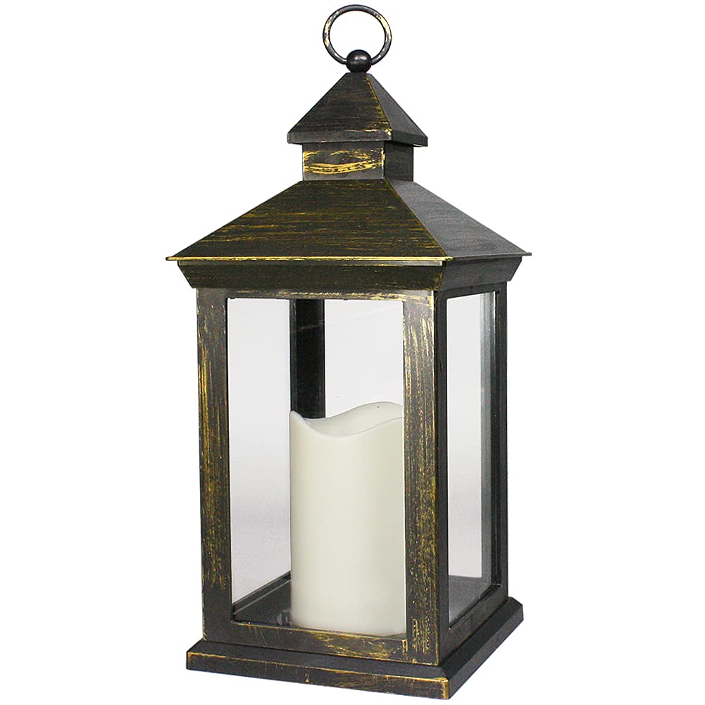 - LIFE-SIZE VINTAGE LANTERN WITH LED PILLAR CANDLE - The life-size vintage candle lantern in Textured BLACK, with toughened glass panes and cross grids, creates an aura of old world charm - Made of lightweight PP thermoplastic that is heat and moisture resistant - A big realistic LED bisque pillar candle with the soft glow Warm White flicker - A graceful marriage of beauty & practicality adds a gorgeous touch anywhere - Eye-catching prop for tables, bars, patios; fabulous indoor & outdoor decor.