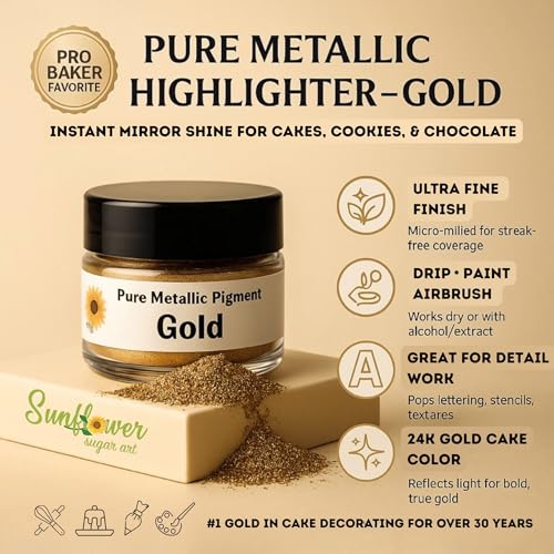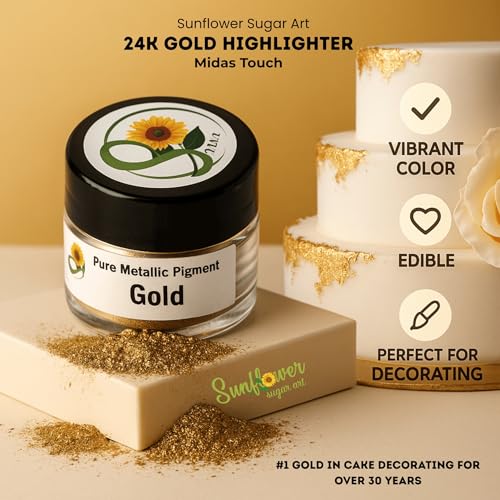 Sunflower Sugar Art 24k Gold Highlighter Dust Food Coloring - Pure Metallic Luxury Gold Baking Stuff for Cake Decoration, Fondant and Gumpaste - 6g High Shine, Non-Toxic Cake Accessories