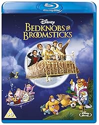 - In 1940 three English children are evacuated from London, only to discover the lady they're staying with (Angela Lansbury) is a witch - but a good one. With the aid of her spells and a magic bed, the children visit an undersea kingdom, witness a football match played by teams of wild cartoon animals, and successfully thwart a Nazi invasion of Britain. Live action and animation are combined in this Oscar-winning Disney film, which also features the songs 'Portobello Road' (as performed by the spiv Bruce Forsyth) and 'The Beautiful Briny Sea'.
