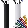 Premium 63'' Cable Management Sleeve, Best Cords Organizer for TV On Wall, Desk, Computer, Office, Home - DIY Adjustable Reversible Black and White Neoprene Cord Hider Wire Cover Concealer Wrap