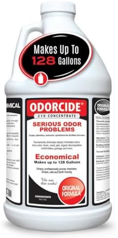 - Use What The Pros Use: Whether it’s smoke, urine, sweat, food, or pet odors, Odorcide odor neutralizer concentrate will eliminate odors of all kinds! The 64 oz of Odorcide 210 home odor eliminator concentrate will make up to 128 gallons once diluted! This pet, urine, and smoke odor eliminator can be used safely on carpets, upholstery, hardwood, and all other surfaces.