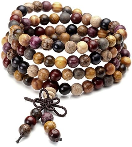 Top Plaza Unisex 108 Natural Wood 6mm 8mm Beads Bracelet Buddhist Rosary Mala Necklace(8mm Sandalwood Duobao)