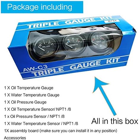 - Multi-function kit:Water temperature gauge,oil temperature gauge,oil pressure gauge 3 in 1 kit