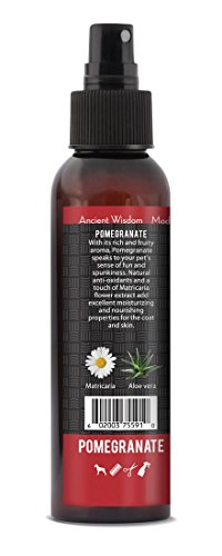 - With its rich and fruity aroma, Pomegranate speaks to your pet’s sense of fun and spunkiness. Natural anti-oxidants and a touch of Matricaria flower extract add excellent moisturizing and nourishing properties for the coat and skin.