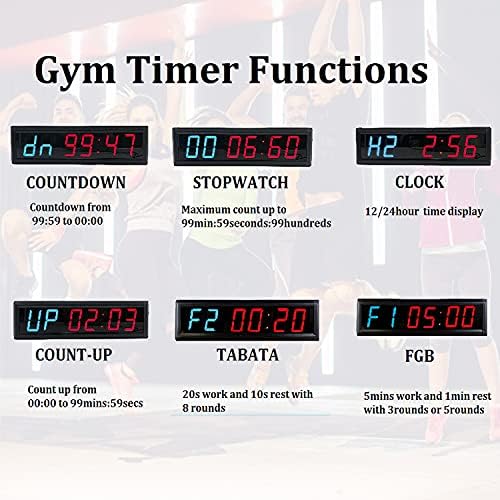 Workout Timer Wall Interval Clock Count Down/Up Stopwatch with Remote (2.3inch Blue and Red)