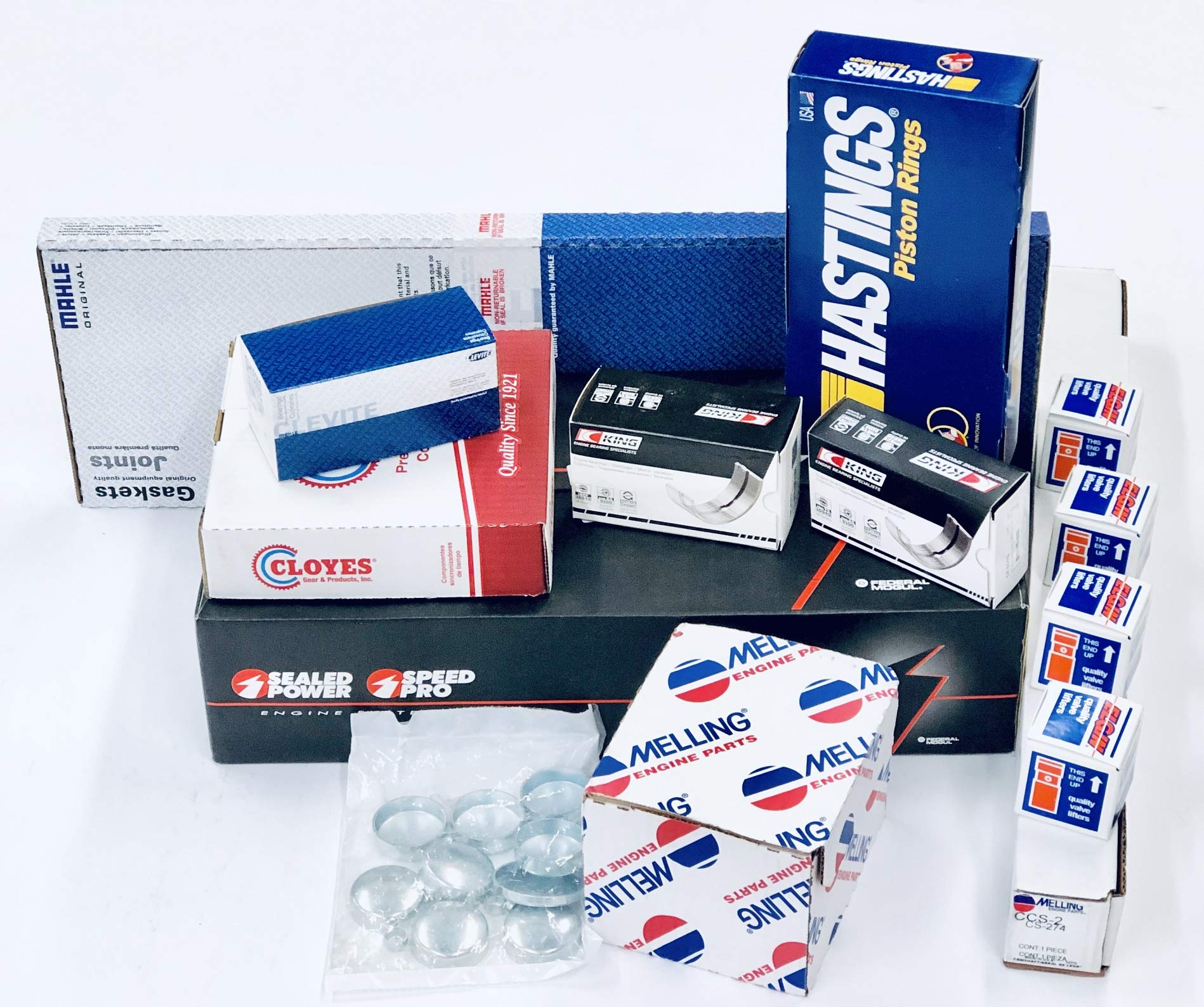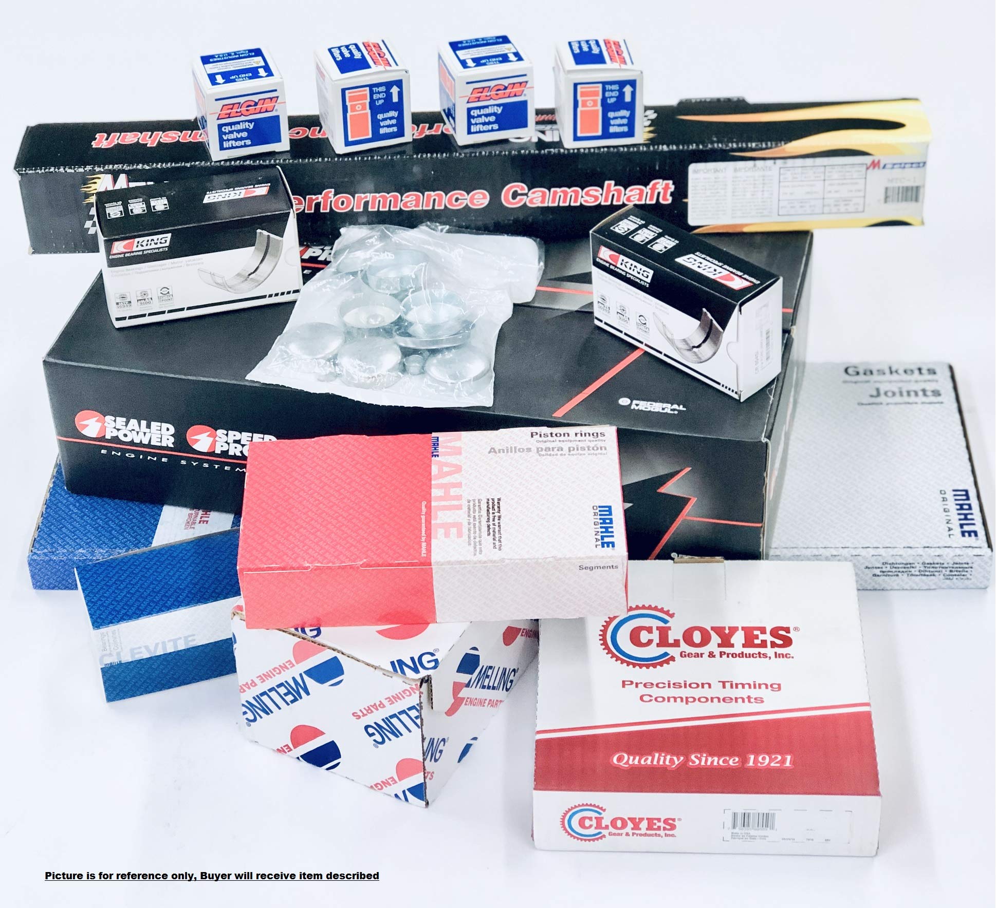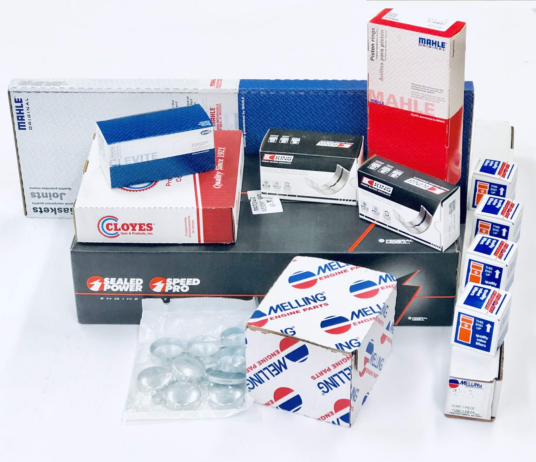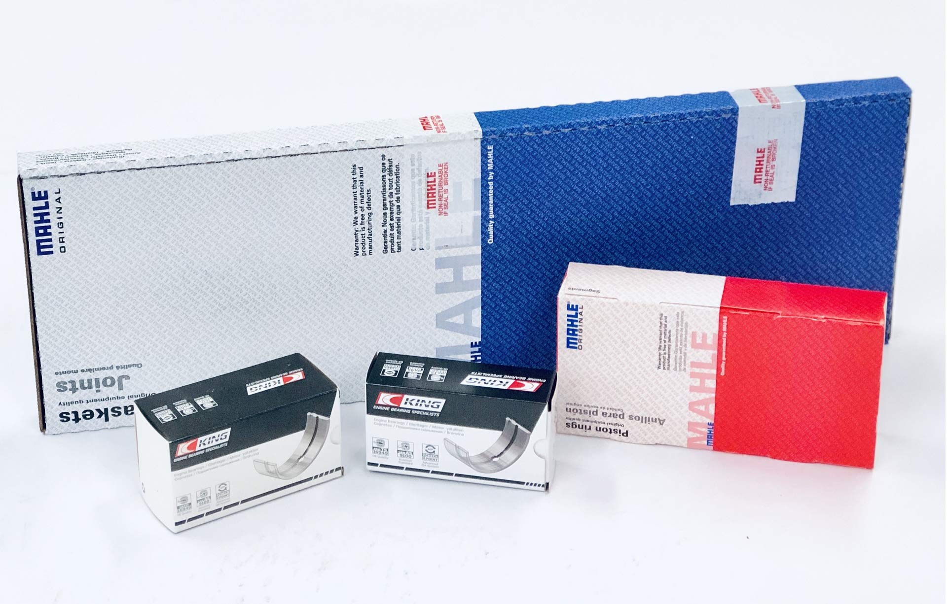 Master Engine Rebuild Kit compatible with Mercruiser Chevy 3.0 181 Marine 140hp Flat Top Pistons. For engines with 1 piece rear main seal