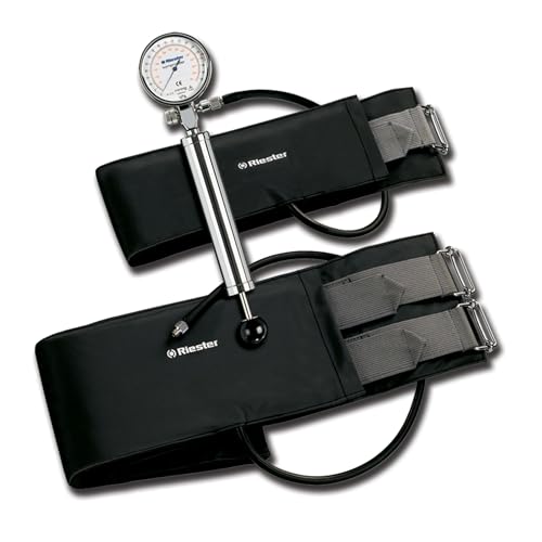 The Riester Pneumatic Tourniquet is a sturdy and reliable device designed to restrict blood circulation to limbs in the event of an amputation.Includes a highly precise manometer that displays exact pressure readings on an easy to read scale. The sturdy metal pump supplies air pressure that inflates the cuff bladder to compress the patient's blood vessels in order to restrict arterial blood flow to an extremity during surgery. This allows the operator to achieve a bloodless operative field. This device is manufactured in Germany to the highest quality standard. You can rest assured this tourniquet is reliable for everyday use and will perform as needed when an emergency medical situation arises.
