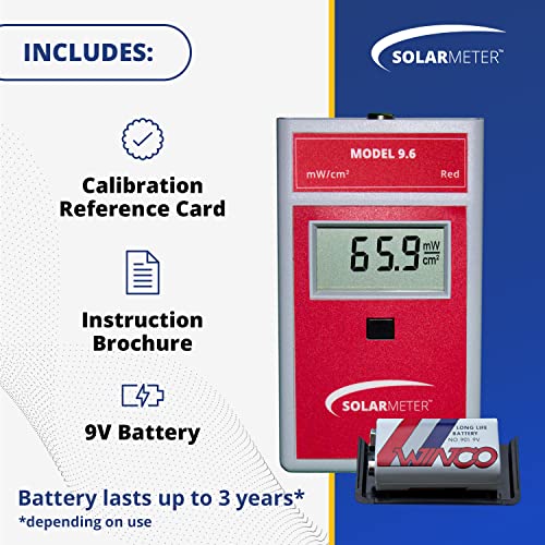 Solarmeter Model 9.6 Visible Red Light Meter, Handheld Digital Radiometer and Light Bulb Tester for Measuring Red Light for Collagen Stimulation & Wound Healing Lamps, 0-1999 μW/cm², Made in USA