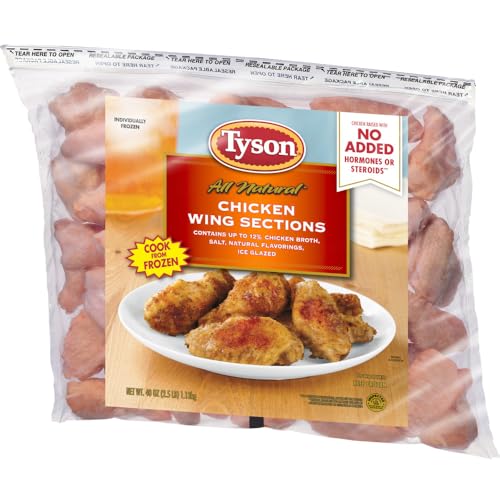 There's nothing like cooking from scratch, especially when you start with Tyson Individually Frozen Chicken Wing Sections. Our all-natural* chicken is juicy and tender with 19 grams of protein and 0 grams of trans fat per serving. Perfect for grilling and frying, simply cook and serve our chicken wing sections with Buffalo sauce for a quick and delicious weeknight dinner. Includes one 2.5 lb package of individually frozen chicken. Everything seems to turn out a whole lot better when you just keep it simple. No nonsense. Just stick to the good stuff. The 100% real stuff that makes life, and chicken, great. . Keep it real. Keep it Tyson. *Minimally processed, no artificial ingredients.