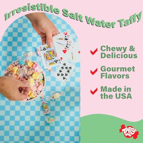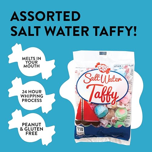 YOU ARE IN FOR AN ENJOYABLE TREAT: The Assorted Salt Water Taffy by Taffy Town includes 5 lbs. of delicious gourmet taffy, individually wrapped for maximum freshness. Made in the USA