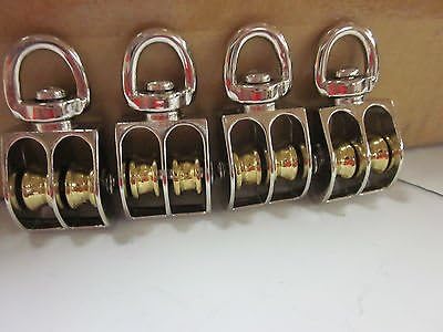 LOT OF 4 DOUBLE SHEAVE PULLEYS1/2 Lighten your load with these premium-grade rope pulleys, made in TaiwanSolid brass sheaves, nExported By ExportYourStore