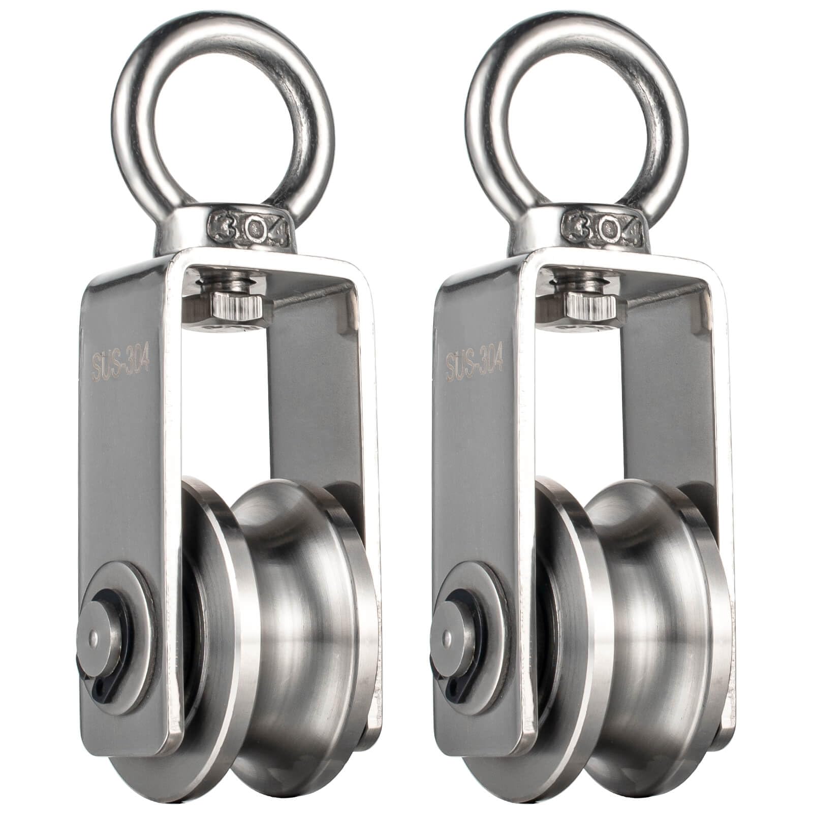 ~ 4pc ~ 1/2" DOUBLE WHEEL BRASS SHEAVE DIE-CAST CHROME PULLEY ROPE WIRE HOIST