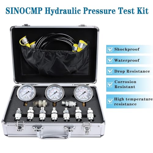 Kit de Prueba de Presión Hidráulica SINOCMP con 3 Medidores de Presión 25/40/60 Mpa, 9 Acoplamientos, 3 Mangueras de Prueba, Kit de Prueba Diagnóstico Hidráulico para Maquinaria de Excavación y Construcción