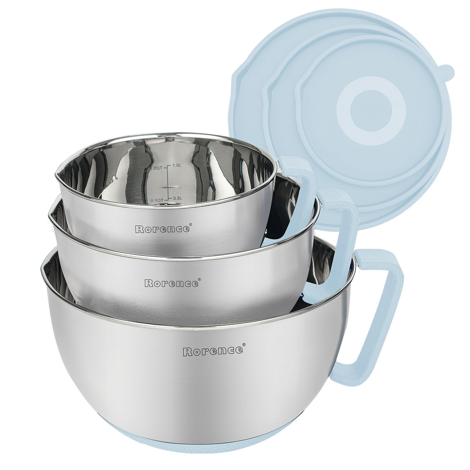 - ERGONOMIC DESIGN: Inner measurements with quart and liter markings for easy measuring. The fitting lids for all bowls keep your food fresh and prevent messes