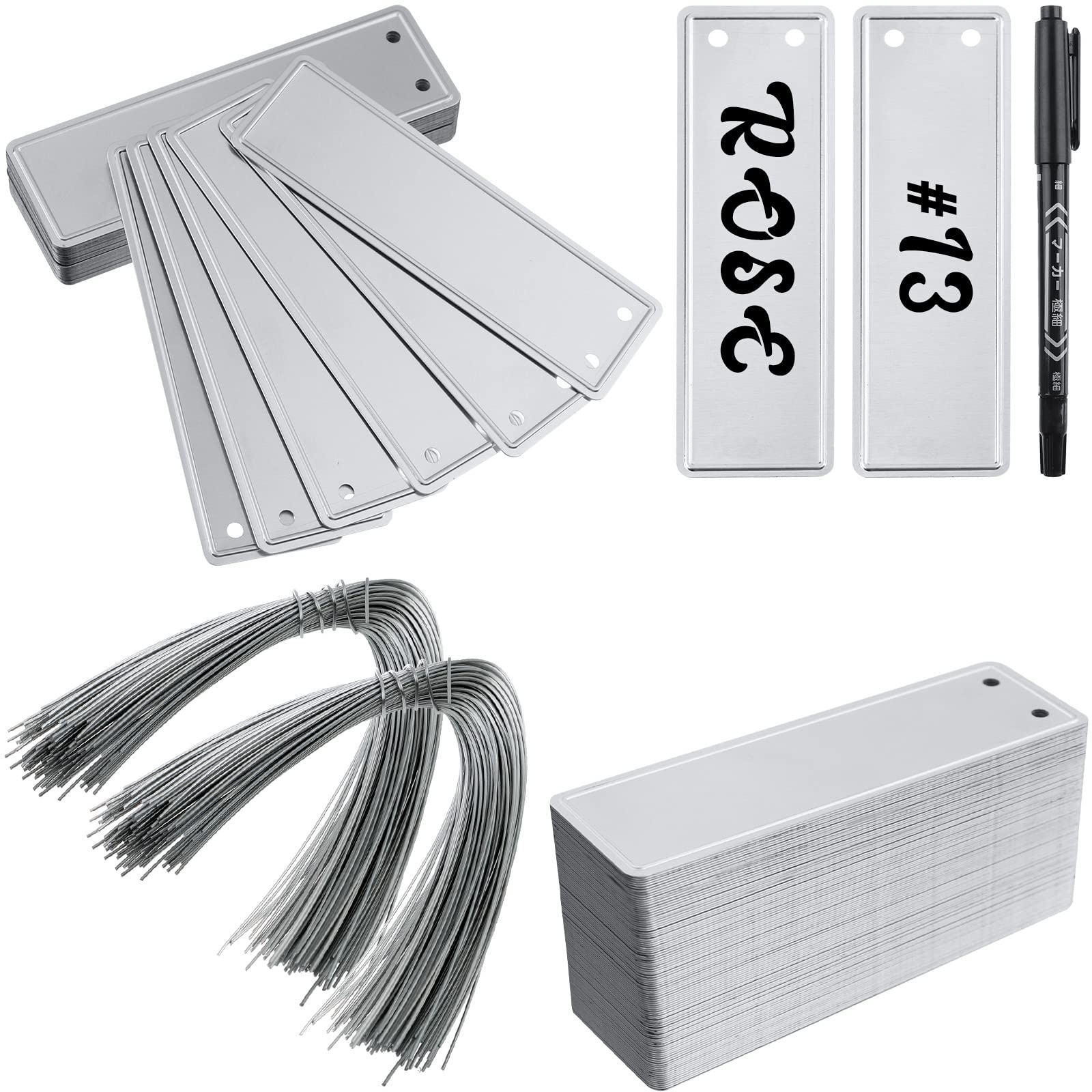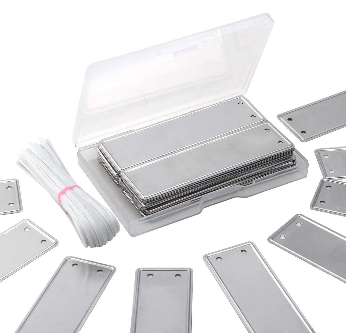 These 100% fully recyclable blank aluminum marking tags are designed for extended use in demanding environments and the outdoors. Permanently indent both sides with ease. Markings will not show through to the other side, so these are truly double sided. They can withstand direct sunlight, heat, cold, oils, water, and lawn gnomes.Gardening, Horticulture, or Nursery Management:Tag your plants, seeds, seedlings, trees, shrubs, herb garden and vegetationUse these tags without worry of rust, fading, or crackingIndoor hydroponics friendlyUpgrade your plastic labels to these premium metal onesField Service Engineers, Facilities Managers: Tag and Identify the following with ease and security using the included 6" tie-on wires: ValvesService MetersControl PanelsInspection RecordsRepair TagsAnything that requires critical long term identificationLockout TagsLabel your long term essentials without worrying about tags being chewed off or disintegrating away.Weather Resistant Dead Soft Aluminum Laminated Cardstock Tags: These cardstock tags are covered with aluminum laminate so they can be used practically anywhere.Artists and Crafters:Garden Wedding DecorTable Escort CardsName Hang TagsEasily cut these using scissors for your own shapes.Emboss them through your Cuttlebug or SizzixUnique labels for gift bags:Personalize your gift bags with these easy to label gift tagsReuse your gift bags with these stylish tagsRe-gift without looking like a thriftLet these tags add a little sparkle to your packageNo elves were hurt during the manufacture of this product