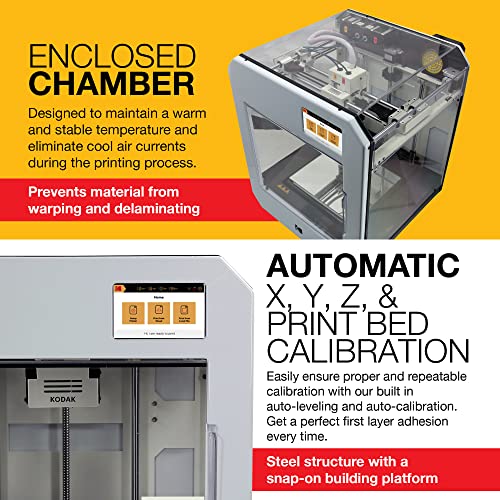 - Although open to using third-party filament, Portrait’s cartridges and enclosed chamber prevent KODAK 3D Printing Filament from absorbing humidity or dust
