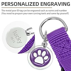 [No Pull, No Choke] - Both sides of the harness are like a triangle structure, which can wrap around the dog's body perfectly, you will feel good control during use. And the stress is on the dog's chest, not its neck, so this harness allows dogs to breathe freely. [Step in Harness] - The harness is very easy to put on/take off. Just let your dog's front leg in, then close the buckle, adjust the strap to fit perfectly, and done! It makes your travel faster and more convenient. [Durable & Comfortable Material] - High-quality nylon fabric with high-density webbing to add durability. The webbings have been widened, and the surface is very smooth, so the harness's comfort will be better. Your dog will enjoy the daily walk in this comfortable dog harness! [Cute ID Tag for DIY] - Each harness is equipped with a metal ID tag, and the front is a cute paw pattern, while on the back, you can engrave whatever you want, such as the dog's name and so on. It does not corrode as easily as wooden labels and is durable. You can also remove it when washing the harness. [Size Guide] - Available Size for Different Breed Dogs - [XS - Strap width 1/2", chest girth 12"-14.8"], [S - Strap width 1/2", chest girth 14.8"-20.5"], [M - Strap width 3/4", chest girth 17.5"-23"], [L - Strap width 1", chest girth 22"-30.5"]. The straps are adjustable to provide maximum comfort and reliable fit. It is recommended that you adjust the suitable size before putting it on your dog, which will save more time for wearing. [Please Notice] - The harness is NOT chew-proof, so please don't leave the harness with your dog alone. Besides, we will take responsibility for any quality issues, so please let us know first once you meet these problems.