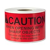 SPECIFICATIONS - 4 x 2 inch (101.6mm x 50.8mm) – [300 Labels] – Easy-to-Peel for Enhanced Effortless Labeling Tasks, Pressure Sensitive - Scuff & Scratch Resistant and Semi-Gloss Finished FUNCTIONALITY - Immediate Eye Catching Distinct Letters "Caution When Opening with Sharp Objects" over Alert Warning Red Background, Clear & Bold Fonts are Intended Design to Stand Out & Get Special Attention to Provide Instruction for the Shipments STRONG ADHESIVE - Pressure Sensitive, Strong Self-Adhesive ensure OSL Labels Sticks & Stays secure on most dry surface for a Permanent Hold: Works on Corrugated Cartons, Boxes, Pallets, Cardboard, Glass, Paper, Bubble Wrap, Poly Bag, Shrink Wrap and Mailer, etc. CORE-PURPOSE - Offers Visibility & Instantly Grab Attention to Provide Quick Package Information to expected personnel; Professional, Safety, Managed OUR PROMISE - We are eager to provide exceptional customer service - If you have any question regarding the products, please let us know. We are more than happy to assist you.