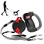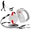 WIGZI - Edición Mejorada 2025 - Correa Doble (2) para Perros Retráctil, Auto-Desenreda, Soporta Perros de Hasta 50 libras, Distancia de 10 pies Cada Perro, Control Codificado por Color, Correas Reflectantes, Impermeable, Color Gris