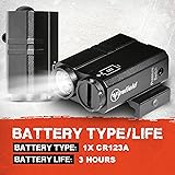 Low Profile Design: The Firefield Charge flashlight is designed with a low profile, weighing only 2.2 ounces. This sleek and lightweight design makes it easy to attach to the rail of your rifle without adding noticeable weight or bulk. Compact and Lightweight: The Firefield flashlight is designed with a compact and lightweight profile, making it a highly unobtrusive accessory, adding minimal weight and bulk while enhancing your targeting capabilities. Powered by CR2 Battery: The flashlight is powered by a single CR2 battery, providing a convenient and reliable power source. With this battery, the LED bulb produces an impressive 180 lumens of brightness, ensuring illumination in various situations. Flexible Illumination Control: With a push-button switch and a pressure pad, the Charge flashlight offers versatile activation for quick target acquisition and home defense.