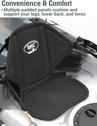 - ADJUSTABLE: The BKC KS222 allows for ideal paddler positioning whether you're fishing, navigating a rushing river, or leaning back to relax on a calm lake. Front and rear adjustable straps make the seat easy to install and adjust.