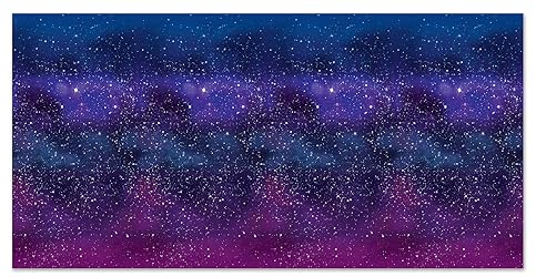 - Beistle Galaxy Backdrop Get ready to blast off into a galaxy of fun and excitement with the Beistle Galaxy Backdrop. Made from durable thin plastic, this decoration measures 4 feet tall by 30 feet wide, making it perfect for covering a large wall. Featuring a stunning galaxy design with stars, this backdrop will transport you and your guests to a magical world of space and adventure. Whether you're hosting a space-themed birthday party, a science fair, or just want to add a touch of interstellar wonder to your home decor, the Beistle Galaxy Backdrop is the perfect choice. This durable backdrop is designed to last for multiple uses and is incredibly easy to use. Simply tape it to any large wall and watch as your space is transformed into a breathtaking galaxy scene. The Beistle Galaxy Backdrop is perfect for a variety of settings and occasions, from space-themed birthday parties to school science projects and more. Use it as a backdrop for photo booths, science fairs, or simply as a decorative touch to your home decor. Party Planning Made Fun From New Year’s Eve Parties, Halloween and Fall Festivities, Bachelorette Parties, Birthday Bashes, Graduation Get-Togethers, Baby Showers, Pool Parties, and more, our Novelty Items and Party Supplies are sure to add a pop of color and extra spice to any occasion. Celebrating life's events, one party at a time. The Beistle line includes over 8,000 items - products for nearly any event, celebration, or theme imaginable. Since 1900 our mission has remained the same: Create products using the finest materials and to the highest standards. Our customers, products, and employees make us who we are. We are The Beistle Company!