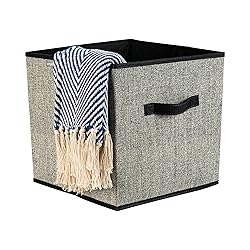 - Simplifies Collapsible Storage Cube is made of breathable non woven and paper board material that prevents dust and damage, while easily sorting and storing off season items and accessories. Sturdy handle makes it easy to carry the storage cube around the house. Holds a multitude of items to help de clutter your living areas. Open top allows for easy access of all of the belongings in the cube. Folds flat for storage when not in use.