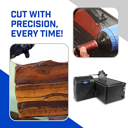 - POWERFUL SAW: This rock saw features a 1/3 HP motor with 1,725 RPM, delivering strong cuts for large materials. The integrated cutting for stone coolant reservoir holds up to 224 oz, and the splash guard keeps water away. This lapidary saw accepts any 10" saw blade with a 5/8" arbor hole, making it perfect for cutting rocks, stone, and glass. Ideal for use alongside wet saw for stone cutting and table saws for precision cutting.
