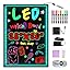 - 【Colorful LED Lights】This LED board delivers dazzling lighting effects with 16 vibrant colors, 5 adjustable brightness levels, and 4 dynamic modes—static, jump, flash, and gradient. By combining these options, you can easily create up to 48 unique light displays. It also comes with 8 fluorescent markers, allowing you to draw colorful designs with ease.