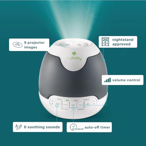 Máquina de Sonido y Proyector de Canción de Cuna MyBaby – Máquina de Sueño para Bebés Reproduce 6 Sonidos y Canciones, Proyecto Imágenes Reconfortantes - Temporizador de Apagado Automático, Volumen Ajustable, Ideal para Registro de Bebé y Regalos de Baby Shower