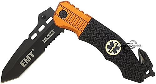 This 8.5" Tac Force assisted folding knife is the perfect tool to carry around in your pocket. Featuring a sharp and durable half serrated stainless steel blade, this knife will get the job done. The black anodized aluminum handle comes with the EMT medallion and is equipped with a seat belt cutter and glass breaker. Comes with a belt clip for easy portability.