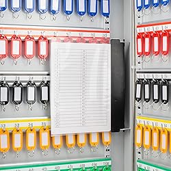 Steel Made in the USA or Imported ADJUSTABLE KEY CABINET - Secure wall mount lock box with adjustable racks for flexible key storage. Keep keys organized and easily accessible. 🌈✨ KEY LOCK - Organize and secure up to 100 keys with ease using our key cabinet equipped with a reliable key lock for added protection. 🗝️🔒 COLORFUL KEY TAGS - Colorful key tags enable quick identification, no more fumbling for the right key. Stay organized! 🏷️🔍 KEY MANAGEMENT - Efficiently manage and secure keys for various settings like homes, offices, and businesses with the convenience and reliability of a key cabinet. 📝📋 WALL MOUNT - Comes with mounting hardware for easy installation. Keep keys safe and accessible, hassle-free. 🛠️💡