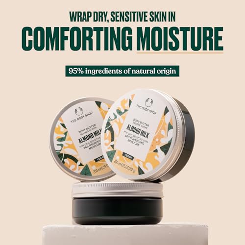 The Body Shop Almond Milk Body Butter, 96H Nourishing Moisture, For Dry, Sensitive Skin, Vegan | 200 mL / 6.75 Oz (192g)