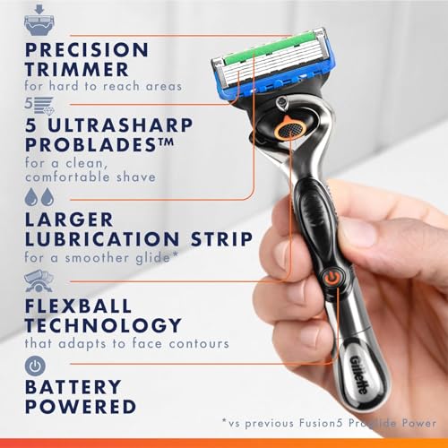 Gillette ProGlide Power Razor para Hombre, 1 Gillette Power Razor Handle + 1 Blade Refill