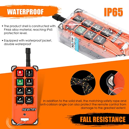 NEWTRY Control Remoto Inalámbrico de Grúa 8 Botones 24V 2 Transmisores Canal Industrial Elevador de Grúa Inalámbrico Interruptor Receptor (2 Transmisores + Receptor DC 24V)