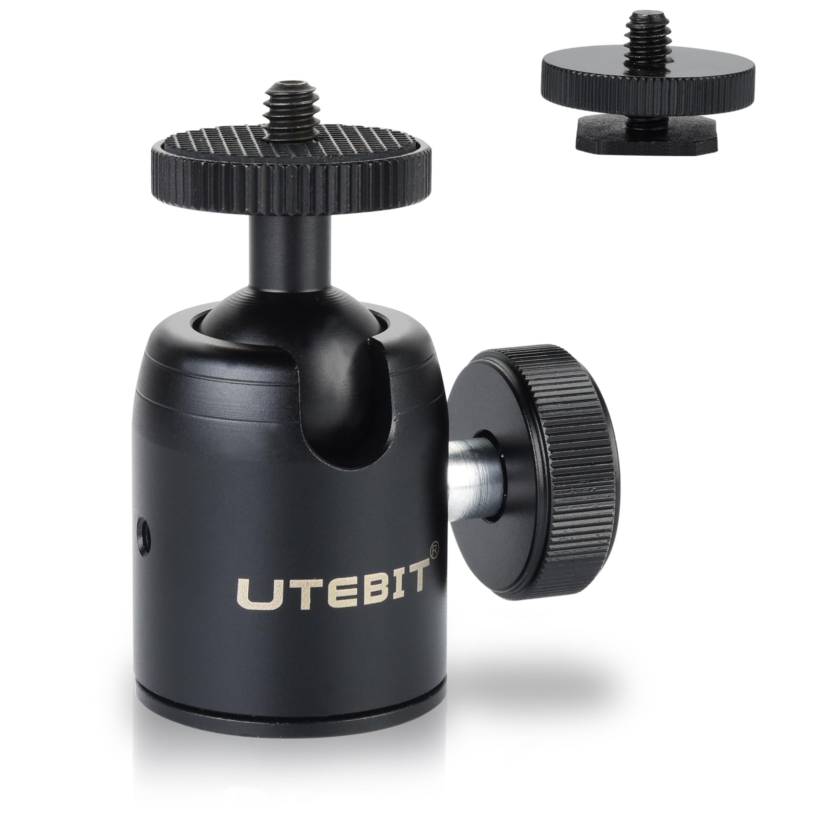 UTEBIT Mini Ball Head, Tripod Head with 1/4" hot Shoe, 360° Rotatable Ball Heads Camera Mount Adapter, Aluminium 20mm Ballhead Compatible with Tripods, Monopods, HTC Vive, SLR Cameras Loading 2.5lb