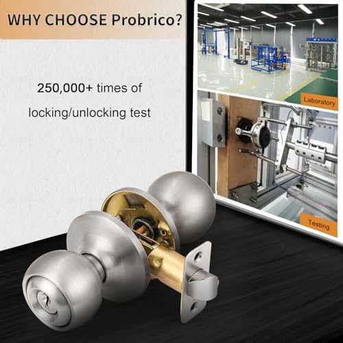 Probrico Keyed Alike Entry Knobs with Locks and Same Keys 10 Pack, Exterior Interior Door Locks, Brushed Nickel Finish, Standard Ball Entrance Door Locksets with Single Cylinder Knob