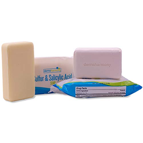 Try two of our popular bar soaps for skin conditions.DermaHarmony Pyrithione Zinc Body and Facial Soap is ideal for relief or itching, redness, irritation, scaling and flaking associated seborrheic dermatitis and dandruff - particularly on the face and head. The soap is safe for daily use by adults and children. We've kept the ingredients as natural as possible (see ingredients list below). SIZE: 4 oz. ACTIVE INGREDIENTS: 2% Pyrithione Zinc (also known as Zinc Pyrithione, ZPT, ZNP, ZNPT, ZINCPT, or OM-1563). INACTIVE INGREDIENTS: Saphonified Oils (from palm and coconut), Water, Glycerin (from vegetable oil), Titanium Dioxide (a natural mineral), Oatmeal, Olive Oil, Vitamin E, Table Salt, Salt of Pentetic Acid.DermaHarmony Sulfur and Salicylic Acid Body and Facial Soap was especially formulated for those with skin conditions and it is an excellent cleansing bar with natural antibacterial properties. DermaHarmony Sulfur and Salicylic Acid Soap is safe for everyday use. Salicylic Acid helps to naturally dissolve some of the intercellular 'glue' that holds skin cells together. Sulfur is great for treating acne, dandruff... SIZE: 4 oz. ACTIVE INGREDIENTS: Precipitated Sulfur 5%, Salicylic Acid 2% INACTIVE INGREDIENTS: Saphonified Oils (from palm and coconut), Water, Glycerin (from vegetable oil), Soyethyl Morpholinium Ethosulfate (soy-derived natural odor control), Table Salt, and Salt of Pentetic Acid.Our soaps:- No harsh chemicals- Made from sustainable natural oils- No artificial colors- No fragrance - Vegan & Cruelty Free