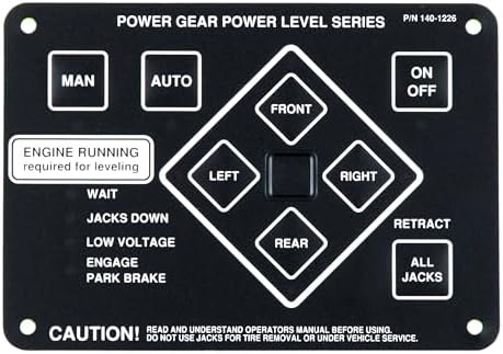 Power Gear Automatic Leveling Control Module with Touch Pad (359080) by Kwikee , 1 Piece. This product is made of high-quality materials to serve you for years to come. Designed using state-of-the-art technology and with customers in mind. It will meet your needs and deliver great quality at an affordable cost. Lippert Components Power Gear Hydraulic Leveling System - Touch Pad Auto Control (140-1226)