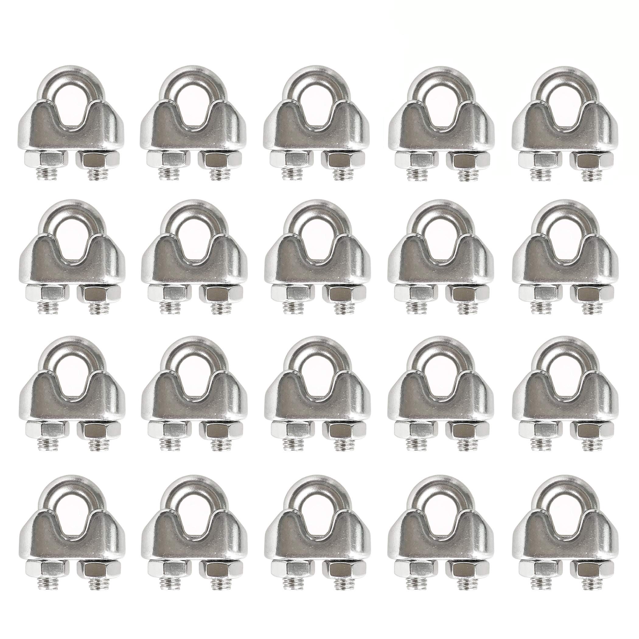 Eowpower 20 Pieces Stainless Steel M4 Wire Rope Cable Clip Clamp 4 mm