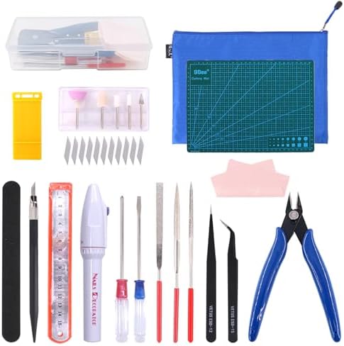 - ✔FULL RANGE & COST EFFICIENT: Packing includes 1 x trimmer pen & spare blade ; 1Pcs x 10Pcs spare blade; 1 x cutting pliers; 1 x parts separator; 1 x ruler; 1 x cutting mat; 1 x grinder & 1x grinding head; 2 x tweezers; 2 x screwdriver; 3 x double-sided polished bar; 3 x model tools file; 1 x polishing cloth. And the items are protected by a plastic box in case of damage. Meet all beginner basic requirements.
