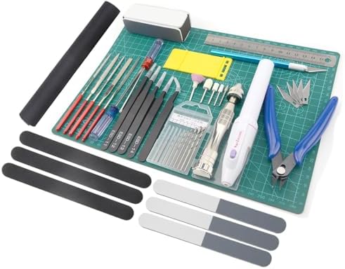 - ● AMPLIA GAMA Y COSTO EFICAZ---El paquete incluye: 4 X lija; 1 X almohadilla de corte; 1 X lijadora eléctrica y 5 piezas de cabezales de lijado; 2 X destornilladores; 5 X limas; 1 X separador; 1 X regla de acero; 7 X bloques de pulido; 5 X pinzas; 1 X grabador y 1 caja de cuchillas; 1 X alicates diagonales; 1 X taladradora manual; 1 X 10 piezas de taladros.