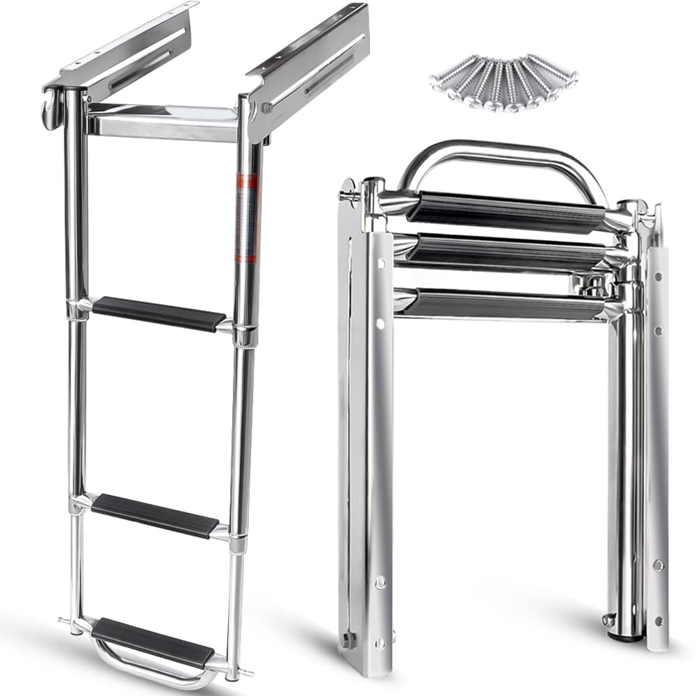 Marinebaby 3 Step Boat Ladder Folding, Stainless Steel Telescoping Swim Ladder for Boat,Pontoon,Yacht,Truck,RV