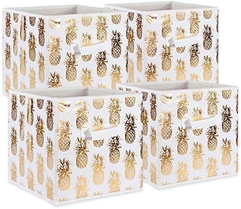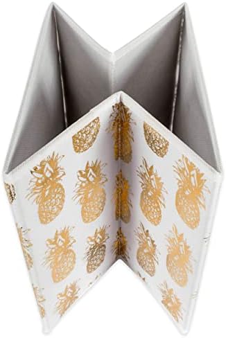 DII Non Woven Polyester Storage Bin, Metallic Pineapple, White & Gold, Small Set of 4
