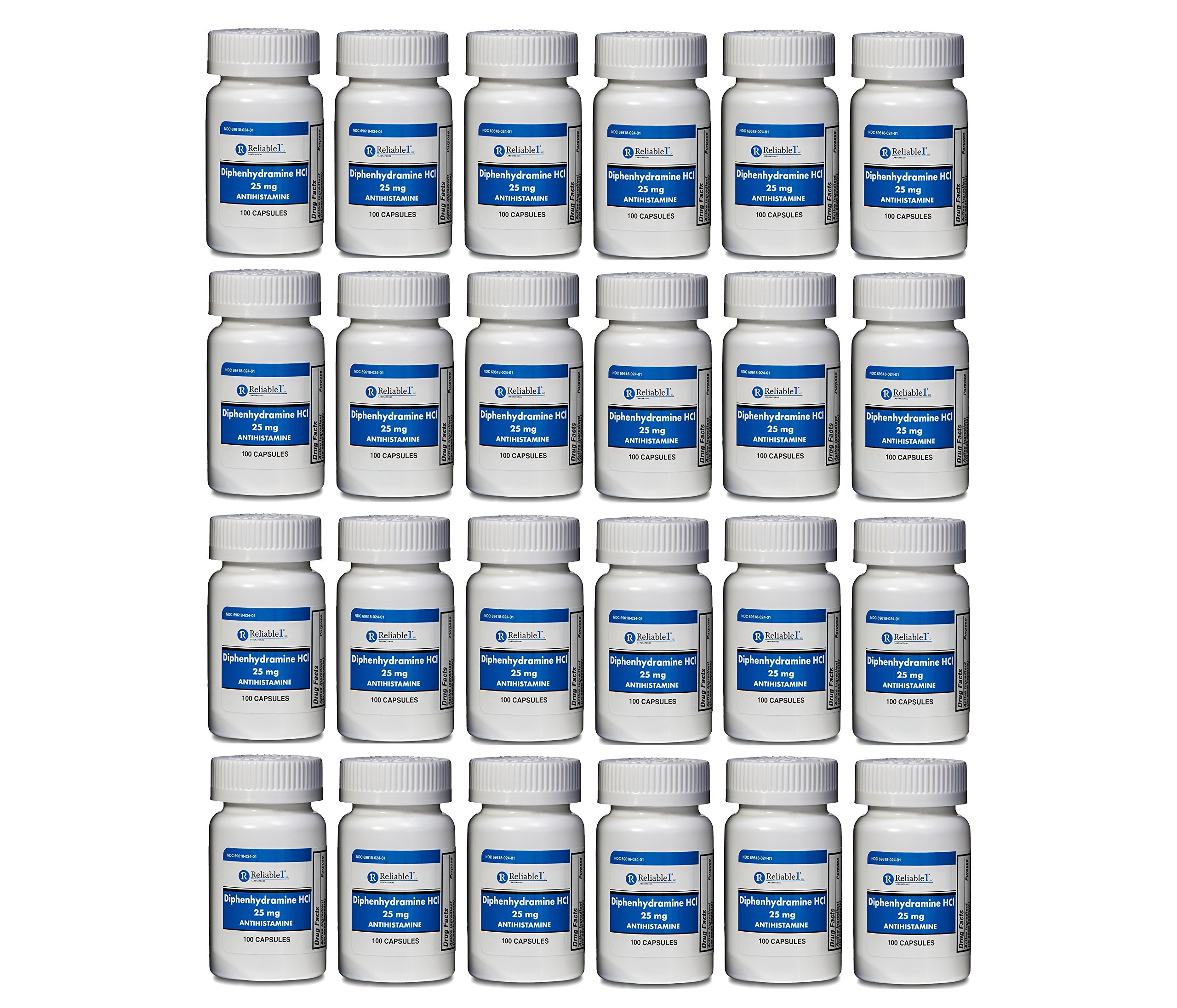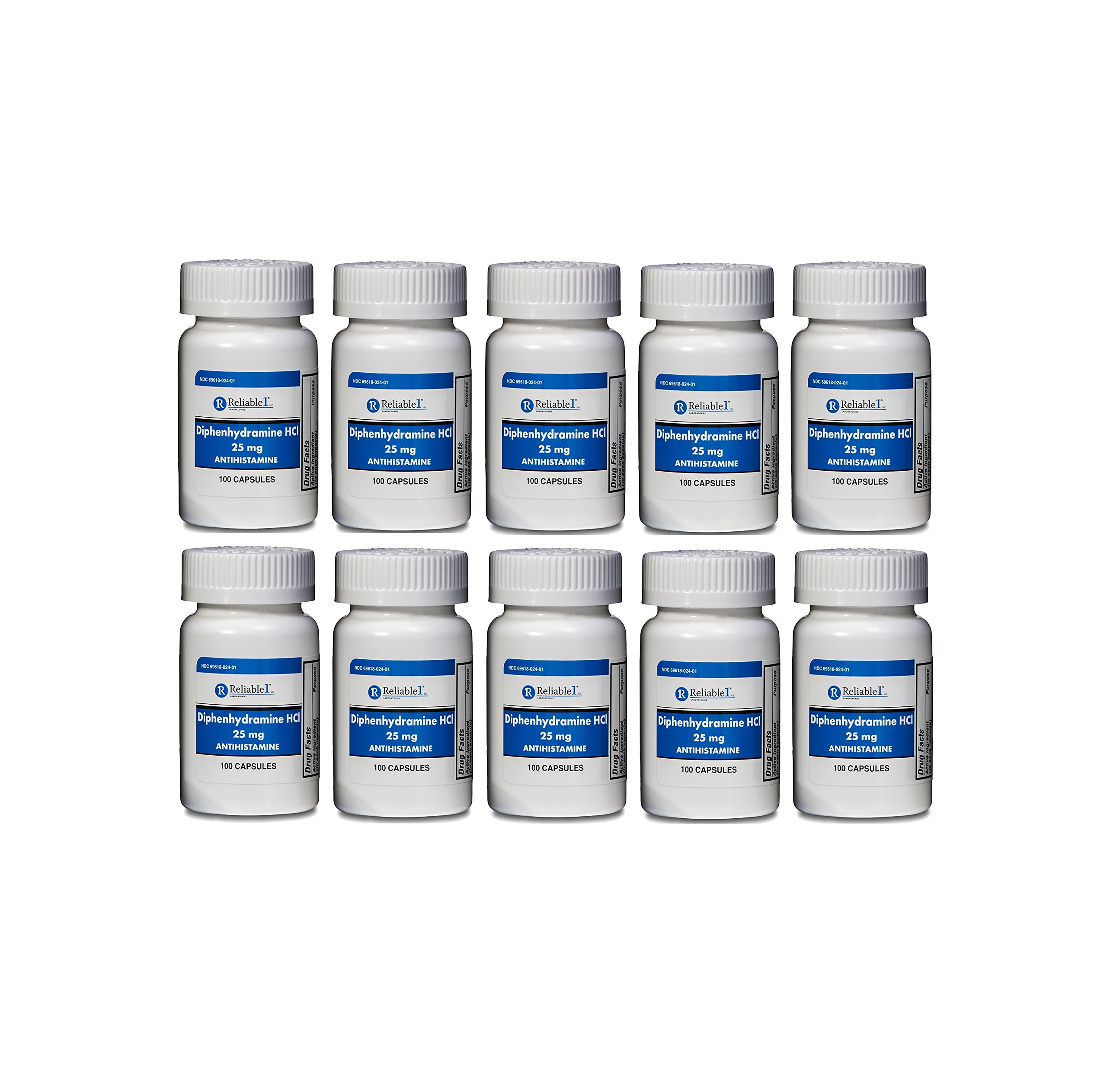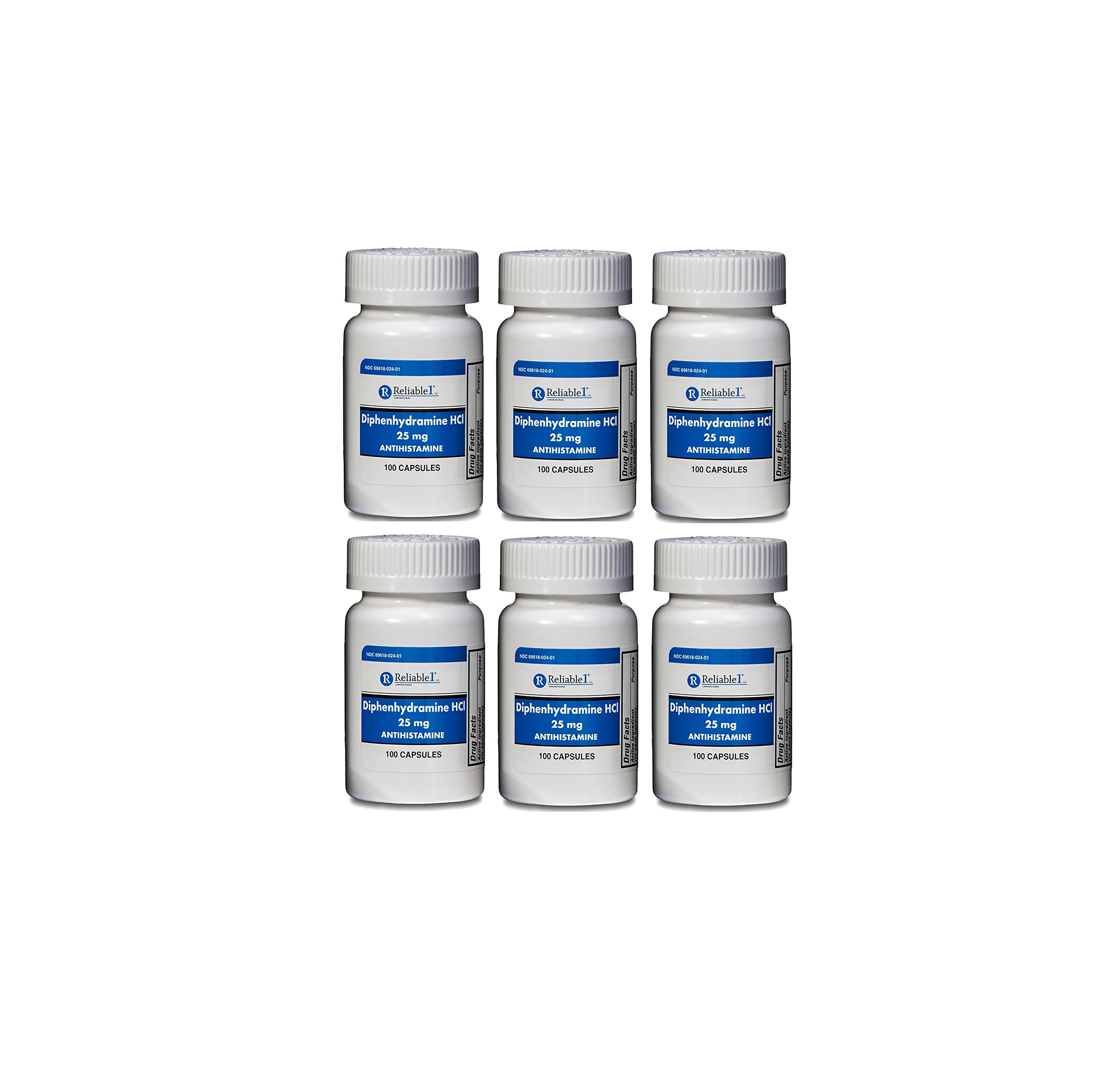 Diphenhydramine 25 mg Generic Allergy Medicine and Antihistamine 100 Capsules per Bottle Pack of 2