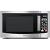 This Toshiba 1.2 Cubic feet 1000-watt Black Stainless Steel microwave is the ideal size for apartment kitchens or office break rooms. Sensor reheating lets you optimally cook six of the most popular food items with the touch of a button. Choose from ten power levels up to 1000 watts. The large digital display has a clock function and can also display a countdown timer as well as the cooking time remaining. Program up to three favorite time and power combinations for additional one-touch convenience. Easily open or close the microwave with the large, easy-to-grip door handle. The Black Stainless Steel exterior looks good in any kitchen. The microwave can be turned on for one to six minutes at 100 percent Power by simply touching the number of minutes you would like to cook. If cooking time is needed while the microwave is running, press the start button to add an additional 30 seconds of cooking time.