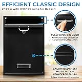 Wall Mounted Locking Vertical Dropbox Mailbox - Safe and Secure (Large) | Made with Galvanized Steel (Black)