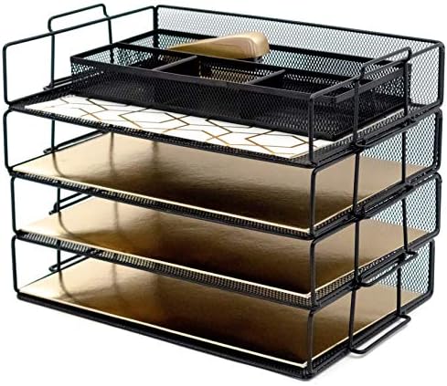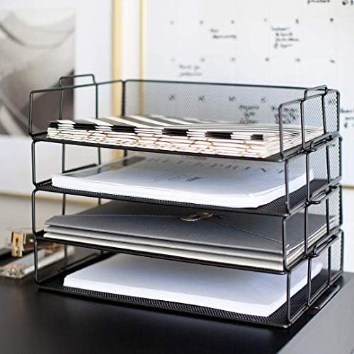 Blu Monaco Desk Organizers - 4-Tier Stackable Paper Tray - Black Metal Mesh Letter Tray File Holder Organizer